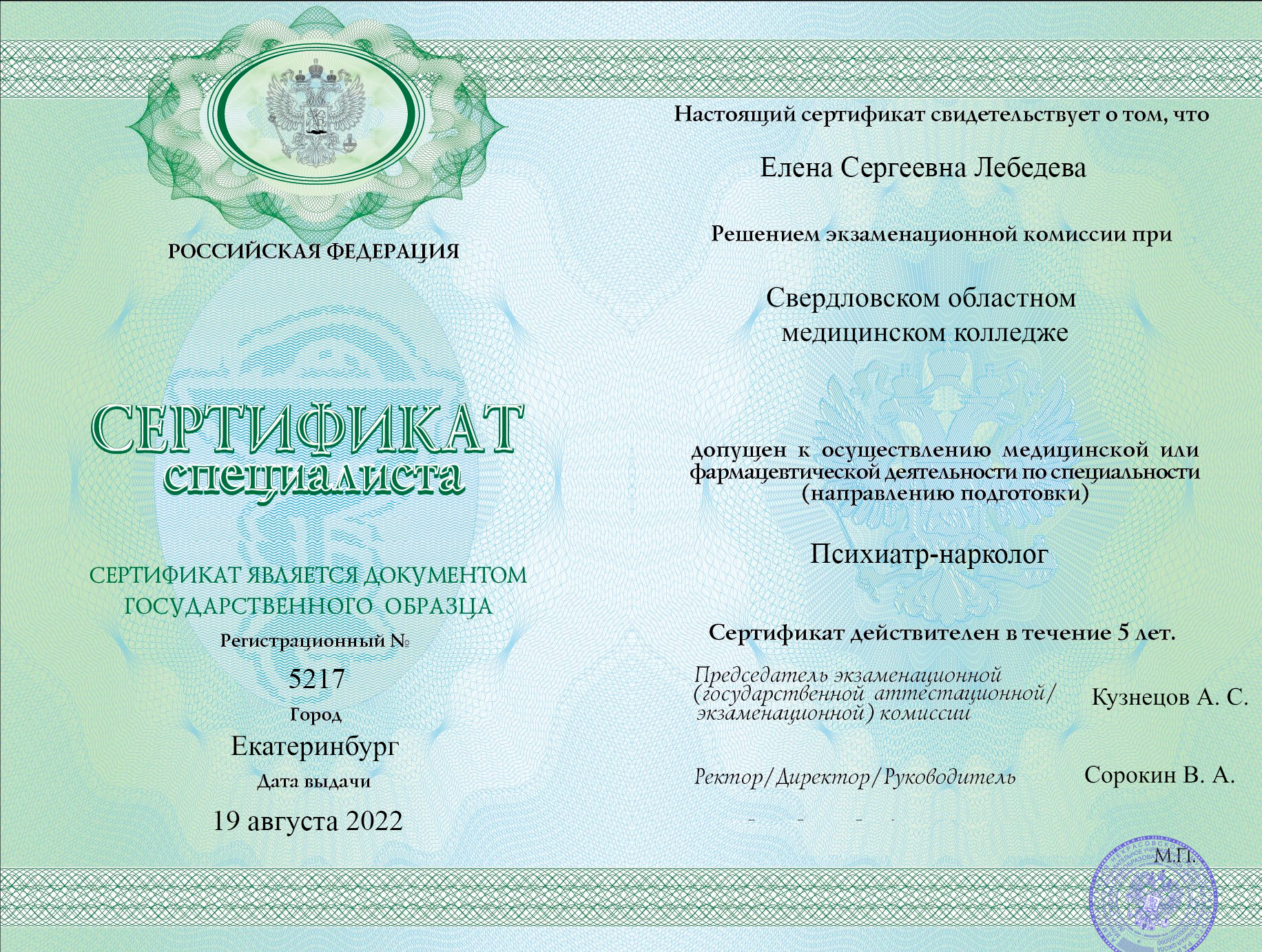 Елена Сергеевна Лебедева врач нарколог клиники доктора Стукаловой в Новоминской